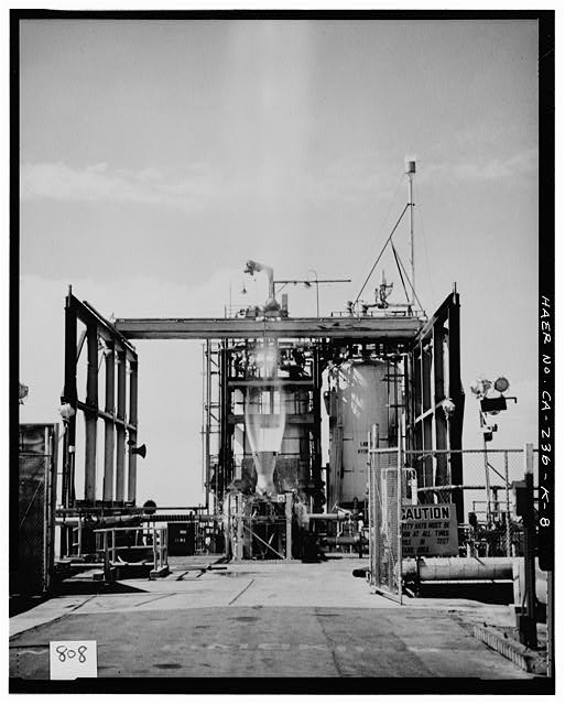 TEST STAND 1-5, INVERTED ENGINE FIRING TEST, CIRCA 1963.