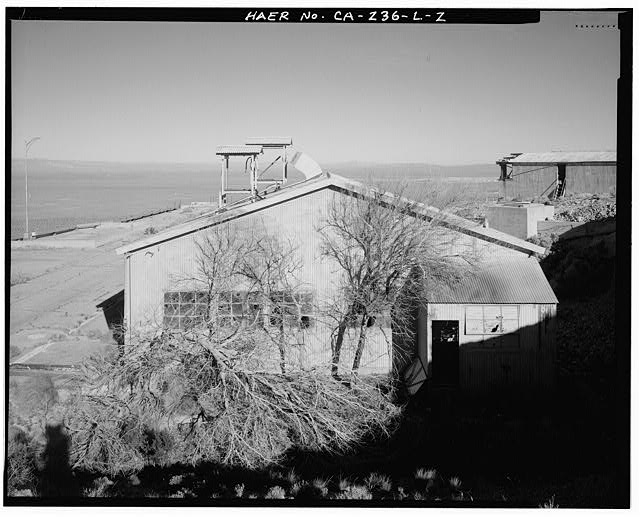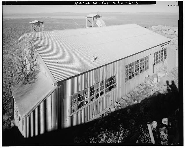 Bldg. 8642 is one story in height and has a rectangular plan (CA-236-L-1 through CA-236-L-3). It has a steel frame structure set on a concrete pad. The overall dimensions of the building are 40 feet by 60 feet. The 12-foot-high walls and the medium slope gable roof are covered with corrugated metal. Fenestration includes a single, top-hung sliding door measuring 10 feet wide by 12 feet high on the gable end facing the test stand and another on the side facing the driveway. Steel frame and sash 12-light windows are arranged in ribbon rows 16 feet wide, with three rows on the long, doorless facade, two rows on the doorless gable end, two rows flanking the door on the driveway facade, and two pairs of 12-light windows flanking the door on the remaining gable end. The interior of the building includes a general work area and a row of four small rooms (CA-236-L-4 through CA-236-L-6). The work area is a large, open space with exposed steel frame rafters. The rooms are walled off in the 15 feet farthest from the test stand entry. This row of rooms serves as the lavatory, locker room, office, and tool crib. The building appears to be in fair condition attributable primarily to minor deterioration over time and lack of maintenance.