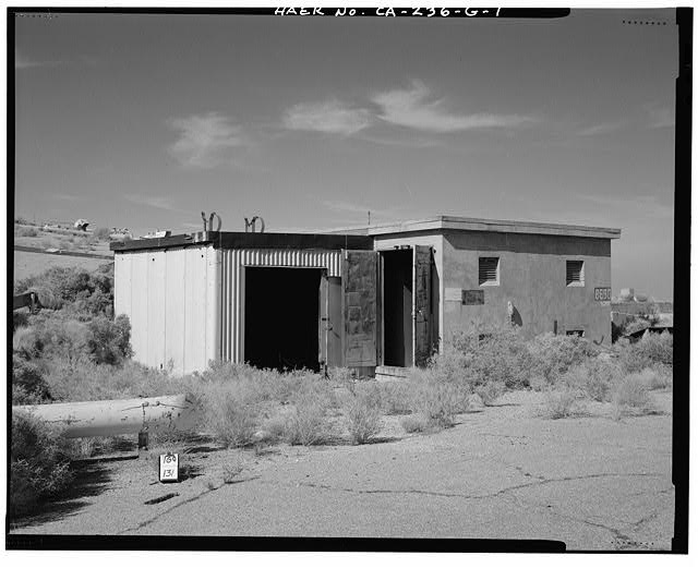 Bldg. 8680 is a poured concrete, one-story rectangular building with a small corrugated metal addition to the northern facade (CA-236-G-1, CA-236-G-2). The building has a flat, builtup roof with metal coping and eaves approximately 6 inches deep. The only fenestration consists of a steel entry door on the northern facade and four recessed openings with steel fixed louvers on the eastern facade.