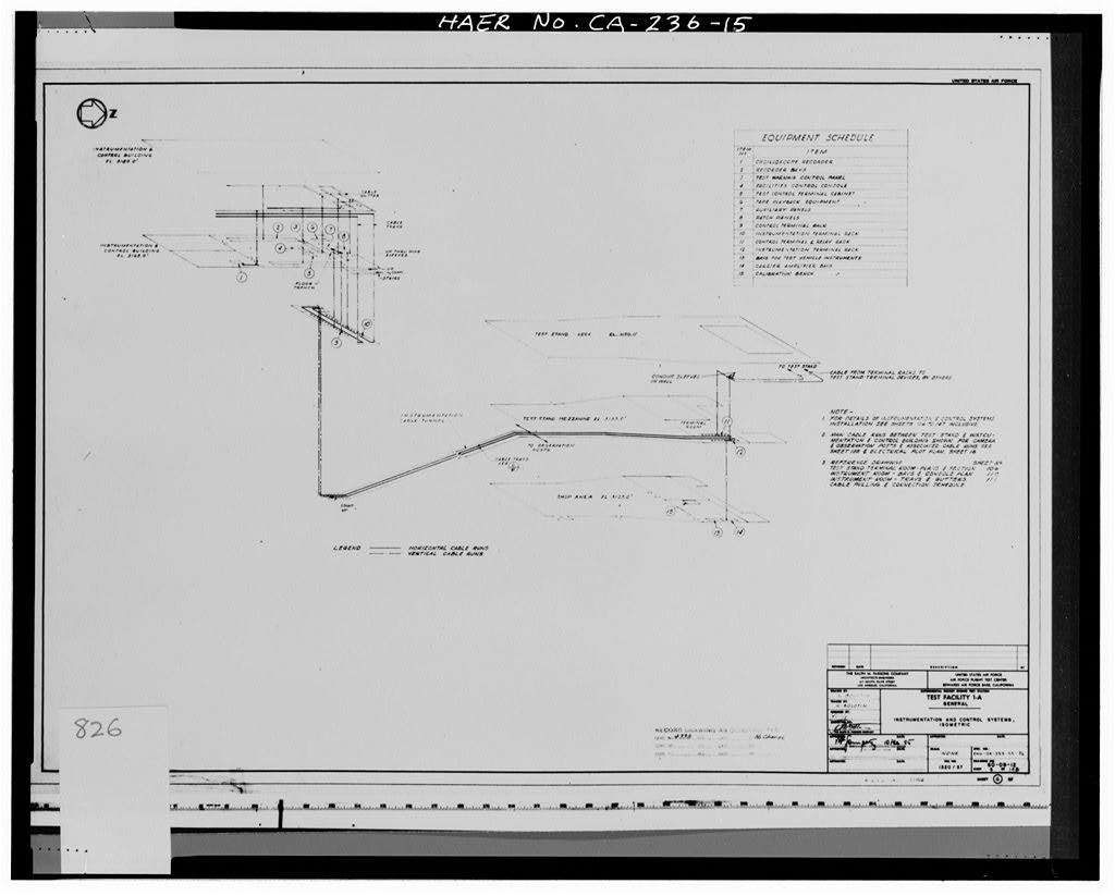 In November 1954, final drawings and specifications were prepared for Test Stand 1-A by the Ralph M. Parsons Company (CA-236-R-26, CA-236-R-27). Drawings and specifications had to reflect the latest in design techniques, which made Test Stand 1-A the foremost of the new rocket test facilities. It was designed for 1,000,000-pound thrust capacity with a very large safety factor and was the first test stand on which a complete Atlas missile system could be tested (Eppley 1961).