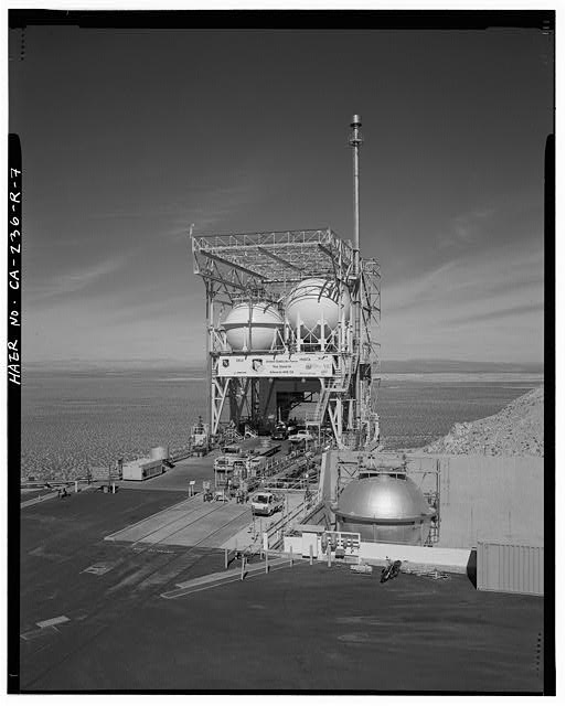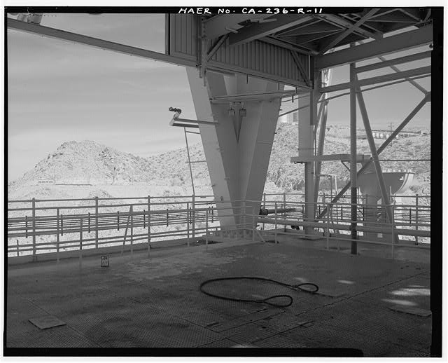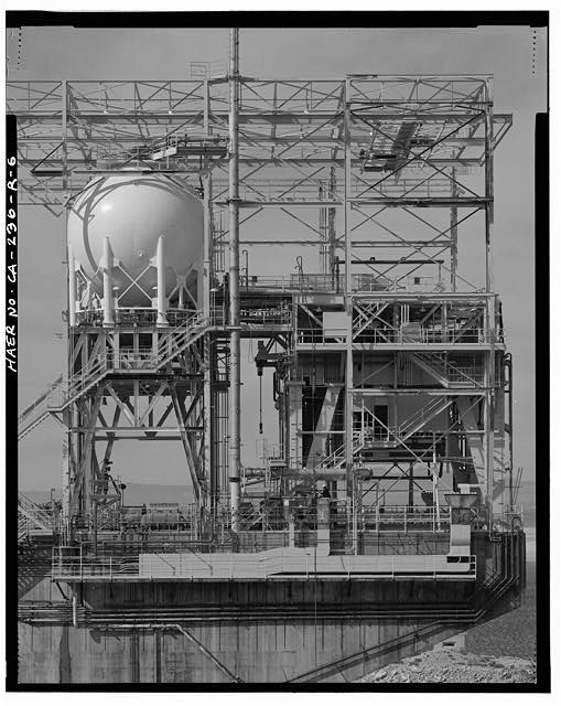 The superstructure that holds the test vehicle, the fuel, and the oxidizer has been modified over the years to meet the needs of new testing programs. The current structure is two rectangular, steel, open frames (CA-236-R-6 through CA-236-R-19). The southern frame is of lighter steel and supports the fuel and oxidizer tanks on top. The northern frame is of heavier steel and supports the test vehicle in the center of the lower third of the structure. There are two levels of work space below the top deck of Test Stand 1-A in the southern 149 feet of the test stand, referred to as Bldg.8783 (CA-236-0-1 through CA-236-0-12). The test stand appears to be in good condition.
