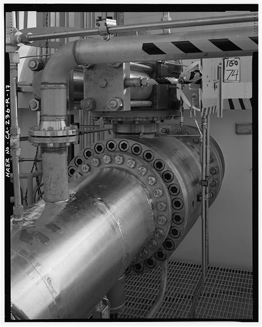 DETAIL, FOURTEEN-INCH LIQUID OXYGEN BALL VALVE. Looking south southeast.