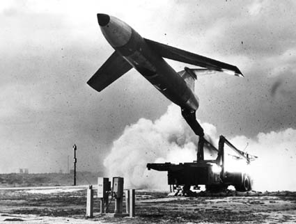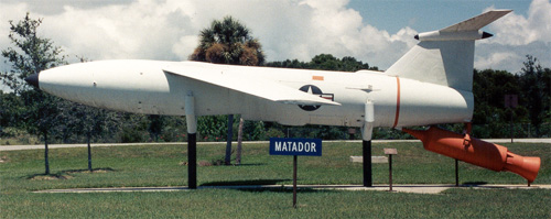 The Matador was developed starting in 1947 by Matin Aircraft, and was the first missile ever deployed by the Air Force. The first launch took place on January 19, 1949 at the White Sands Missile Range in New Mexico. By 1951, testing was moved to Patrick Air Force Base in Florida (south of Cape Canaveral).